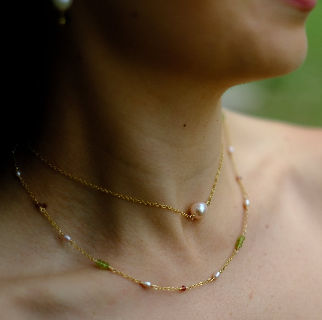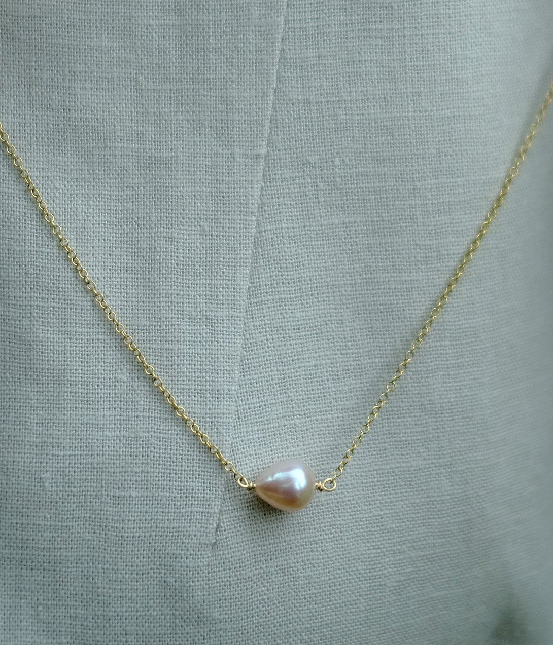 Natural Pink Freshwater Pearl 9.50mm wire wrapped on chain